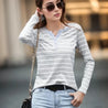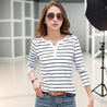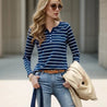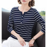 A refined striped blouse in soft, midweight fabric with a comfortable pullover design.